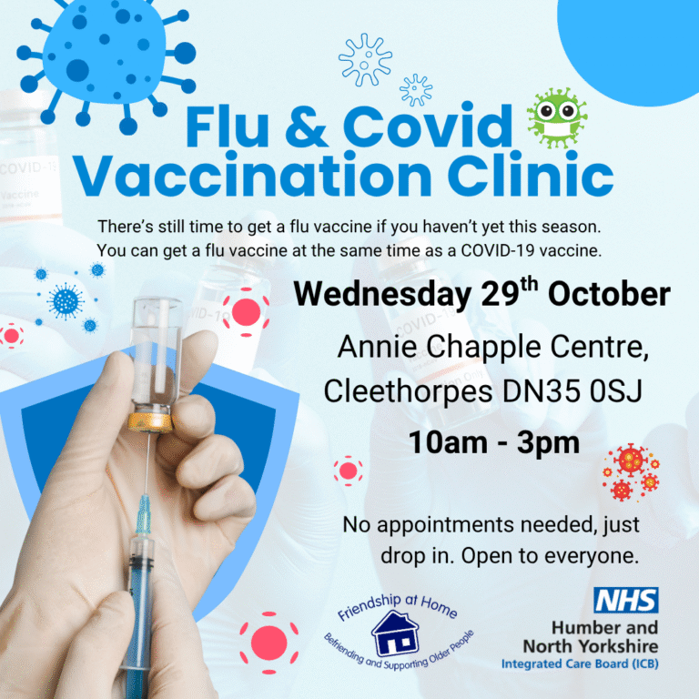 Wednesday 29th October – free flu and/or covid vaccinations. Annie Chapple Centre 10am – 3pm No booking needed. Open to all.